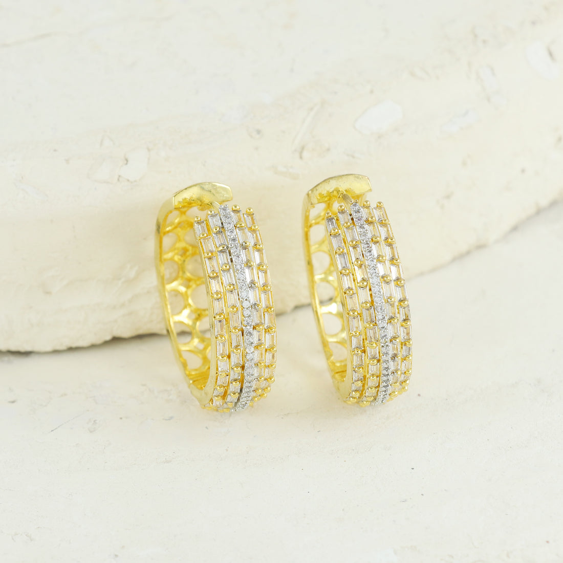 A stylish pair of gold plated AD bali hoops designed to add subtle sparkle and...
