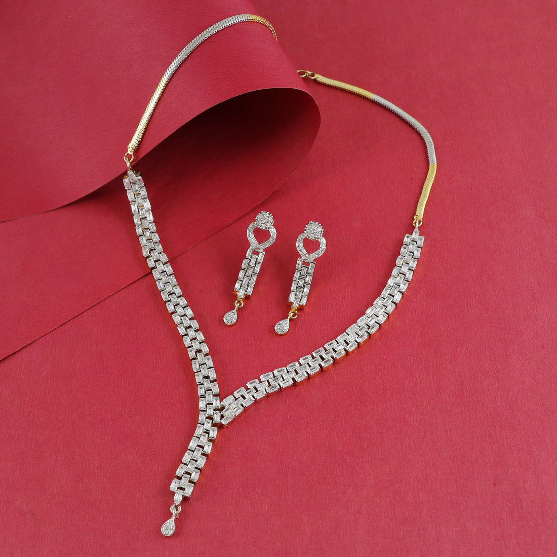 A striking necklace set featuring a two-tone finish accented with sparkling AD stones, crafted on...