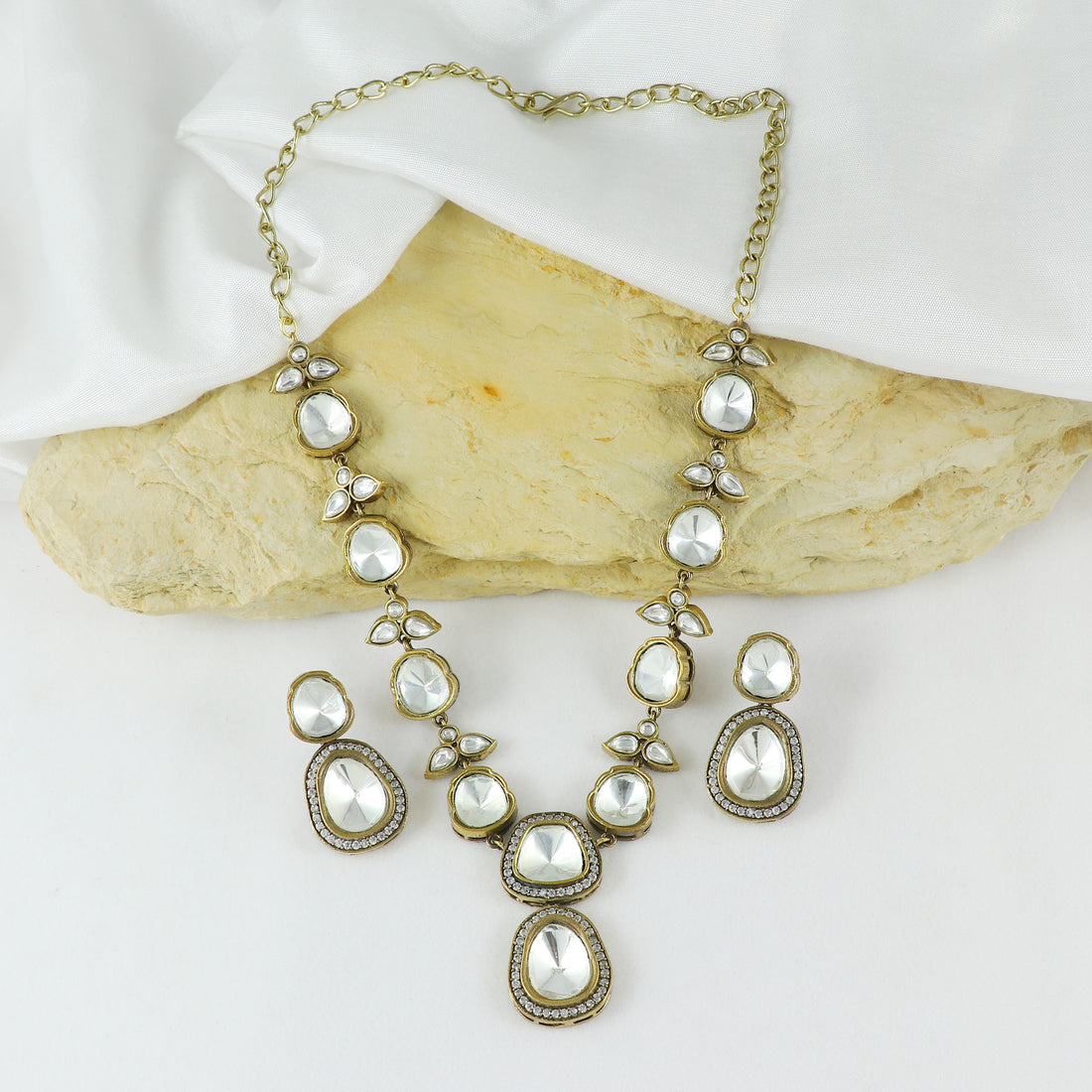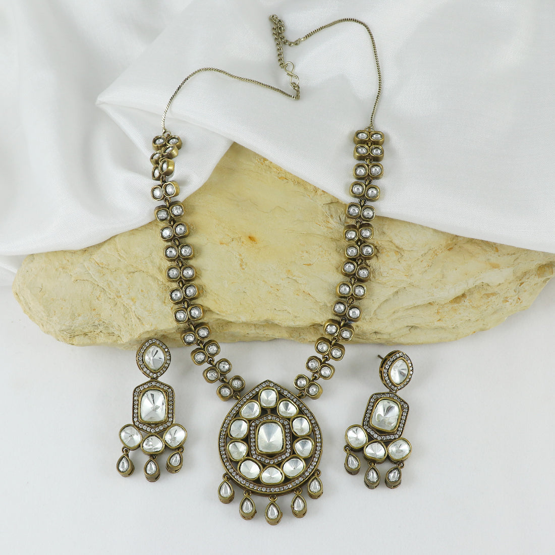 Eternal Bling Oxidised Polki Heavy AD Necklace Set