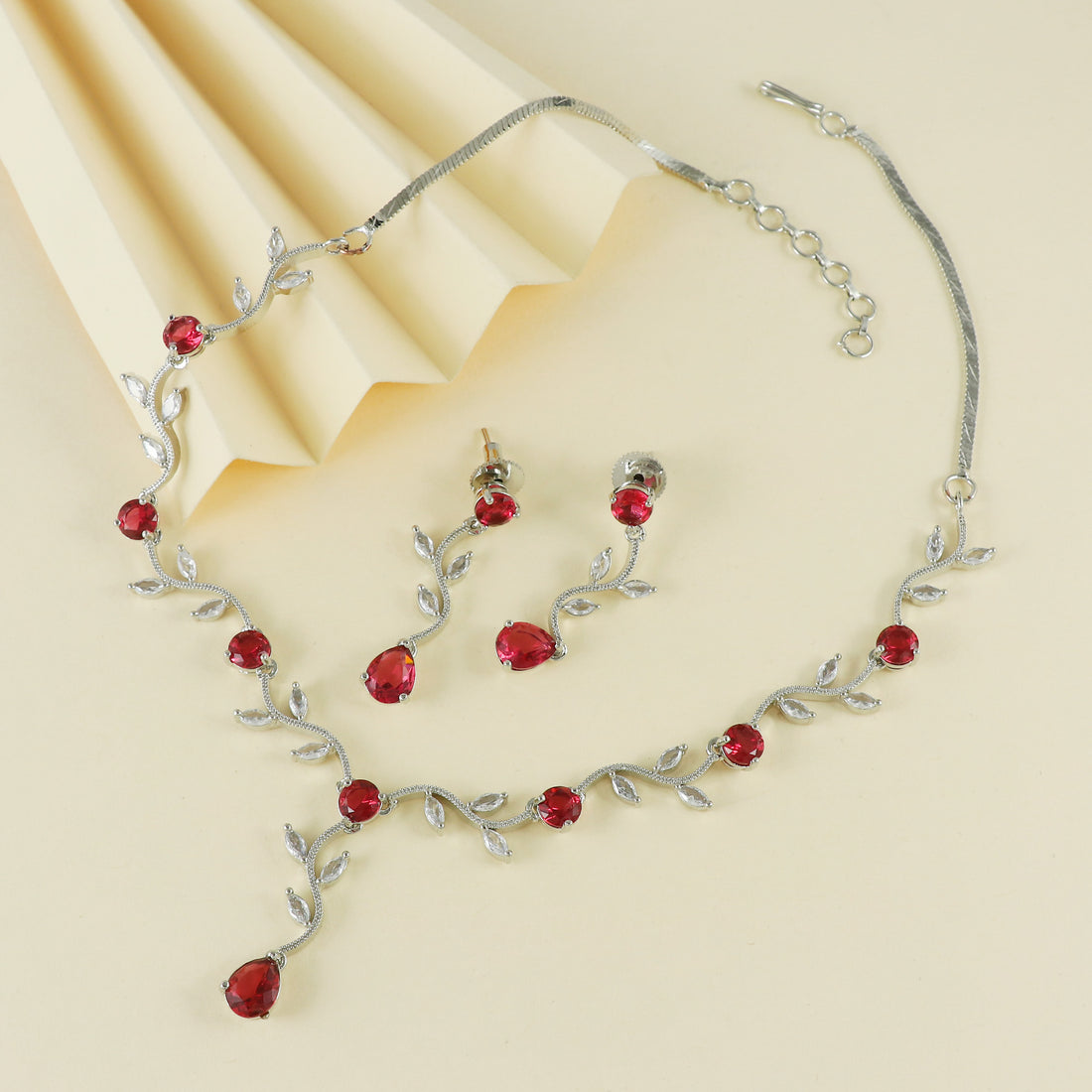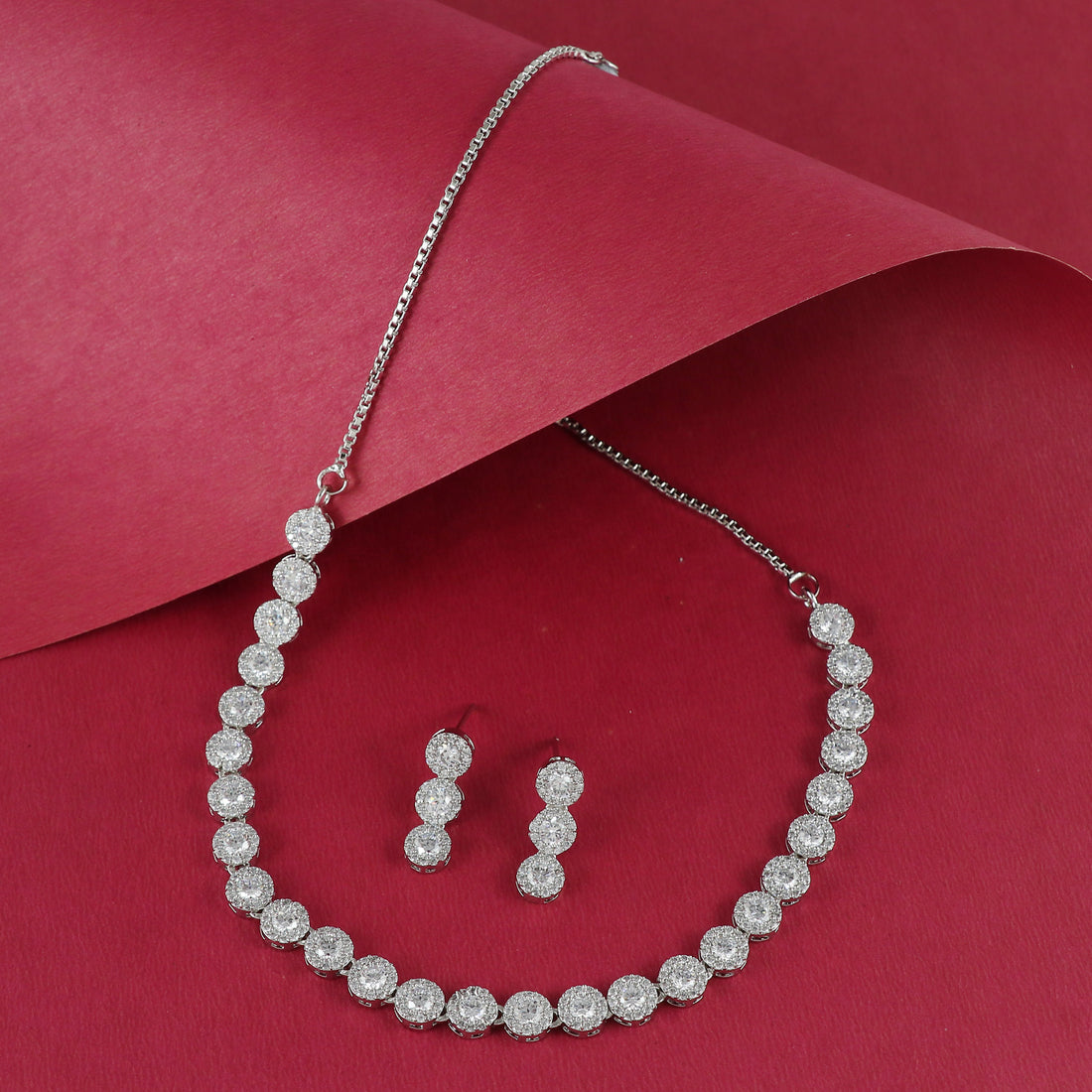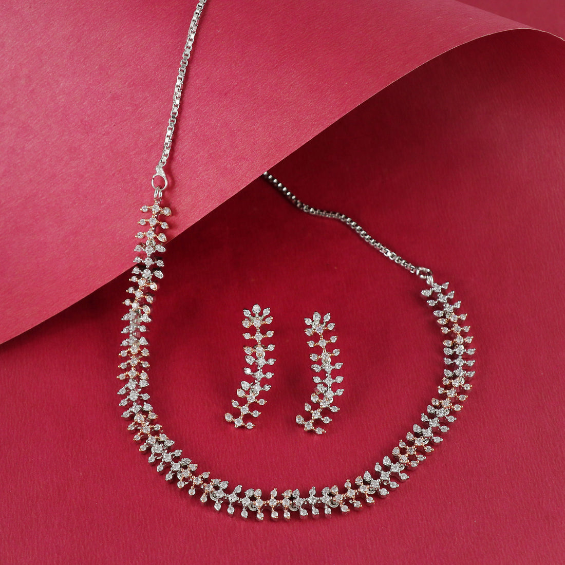 A refined necklace set adorned with sparkling AD stones, crafted on a brass base with...